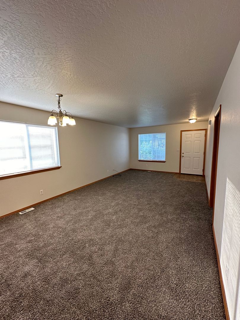 Welcome to Trestle Street Tri-Plex in Rathdrum! This cozy single level triplex offers a spacious living room, dining area, and kitchen equipped with an electric stove, refrigerator, and dishwasher. The unit also features a convenient laundry room with washer & dryer hookups, front and back sprinklers, a patio for outdoor relaxation, and gas heat for those chilly Idaho nights. With a single car garage, lawncare, and partial snow removal provided, you can enjoy a hassle-free living experience.